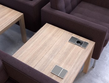 Встраиваемый в столешницу электроустановочный модуль с раздвижной крышкой. Может быть укомплектован разъемами HDMI, USB, RJ45 и другими. - 06008F00005