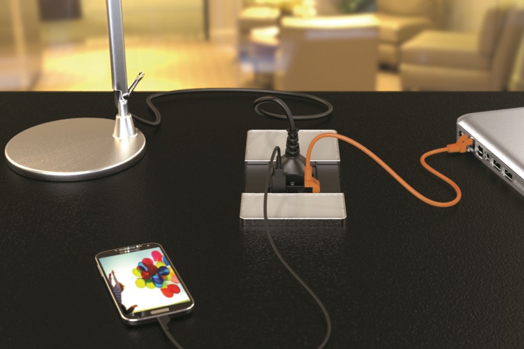 Электроустановочный модуль с раздвижной крышкой VersaPAD (1 розетка 220V + 1 RJ45 + 1 USB 5V, черный)
