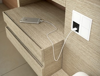 Встраиваемый розеточный модуль со сдвигаемой крышкой. Глубина встраивания - 40мм, защита от пыли и влаги - IP54.