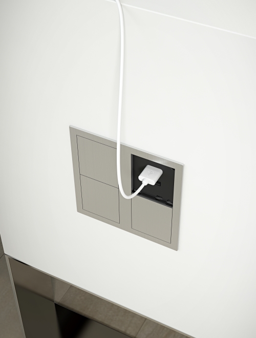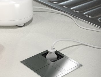 Встраиваемый розеточный модуль со сдвигаемой крышкой. Глубина встраивания - 40мм, защита от пыли и влаги - IP54. - 06015F00003