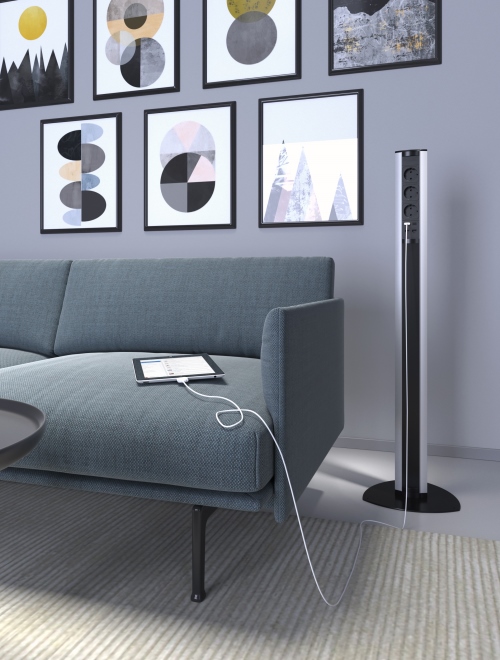 Вертикальный напольный электроустановочный модуль. Может подключаться к стандартной силовой розетке, выполняя роль удлинителя, но также может подключаться проводами, выходящими из пола. Возможна комплектация разъемами USB, HDMI и др.