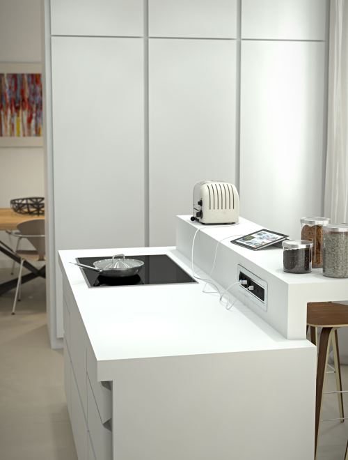 Встраиваемый автоматический розеточный модуль, открывающийся вращением при нажатии на сенсорную кнопку. - 06024F00011