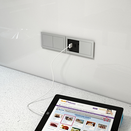 Встраиваемый розеточный модуль со сдвигаемой крышкой. Глубина встраивания - 40мм, защита от пыли и влаги - IP54. - 06025F00004