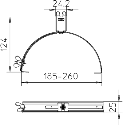 Нержавеющая сталь 1.4301 • регулируемая ширина 185-260 мм; • для быстрого монтажа с помощью барашкового винта. - 5202836
