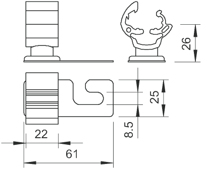 • основание из нержавеющей стали (V2A); • основание с продольным отверстием Ø 8,5 мм; • держатель из полиамида.