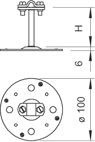 • с держателем и основанием из стали, оцинкованной методом горячего погружения; • основание Ø 100 мм.