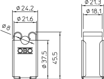 Высокий безболтовой держатель для круглых проводников Rd 8, со сквозным отверстием Ø 5 мм