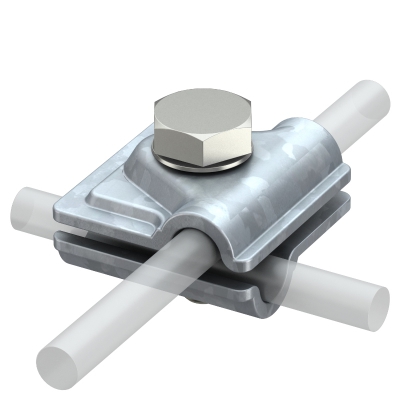 для T-образных, крестообразных и параллельных соединений; • быстрый монтаж с использованием винта M10 x 30 из высококачественной нержавеющей стали; • в соответствии с требованиями стандарта VDE 0185-305 (МЭК 62305). Оцинкование методом горячего погружения