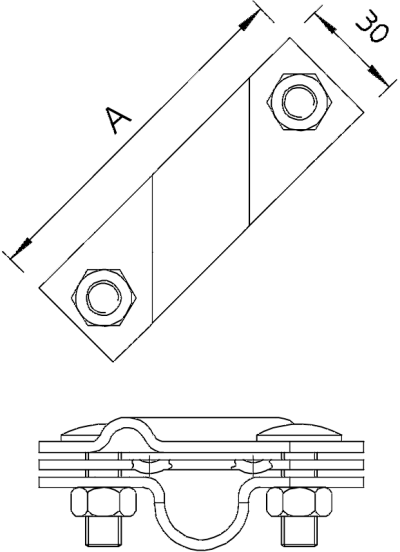 Для соединения с круглыми проводниками Rd 8-10 или плоскими проводниками до FL40; • с промежуточной пластиной • с 2 шестигранными болтами M10 x 30 и 2 шестигранными гайками M10.