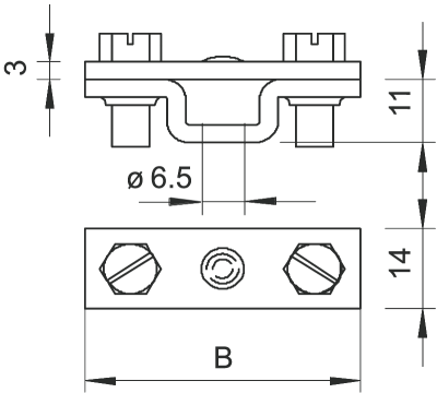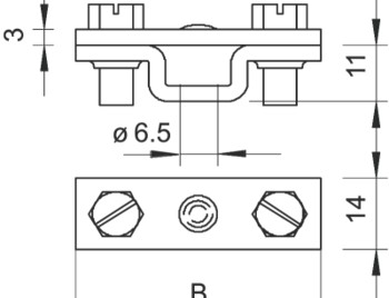 для плоских проводников FL 40, с монтажным отверстием Ø 6,5 и 2 шестигранными болтами M6 x 16 (F). Оцинкование методом горячего погружения