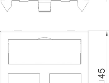 Корпус компьютерной розетки с прямым кабельным выводом и клапанами, для установки 2 гнездовых телекоммуникационных модулей RJ45. Растровое крепление предусмотрено для вертикального и горизонтального монтажа. В корпусе С расположено отверстие 19,30 x 14,80 мм для прямого монтажа модулей.