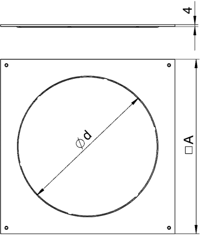 Крышка для монтажных оснований UZD350-3 с отверстием для установки круглого лючка номинального размера R7. Монтажное отверстие, заглубленное на 3 мм, для закрытия заглушкой.