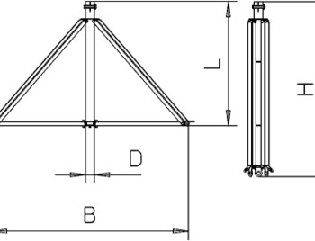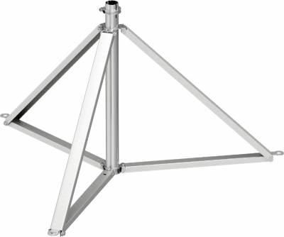 Складной треножный штатив для безболтовой установки молниеприемных мачт, изолированных молниеприемных мачт диаметром 40 мм, а также для крепления провода OBO isCon®; максимальный наклон кровли 5 градусов; бетонные основания и резьбовые стержни необходимо заказать отдельно. - 5408967