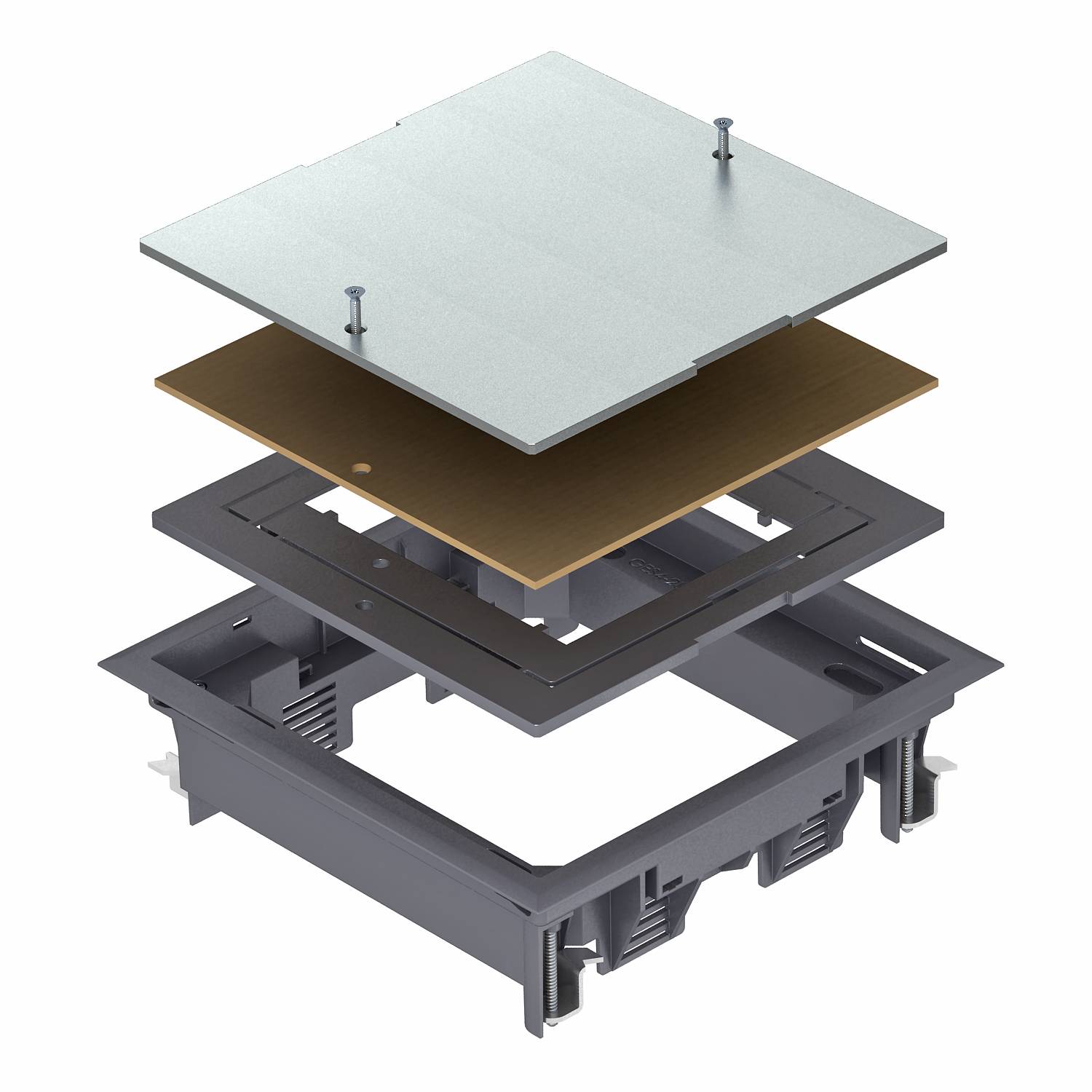 Вставка в коробку для потайной заглушки квадратного монтажного отверстия номинального размера 4, применение в системах каналов и системных полах во внутренних помещениях.Выемка 5 мм для фрагмента напольного покрытия при необходимости регулируется до 3, 8 или 10 мм.
