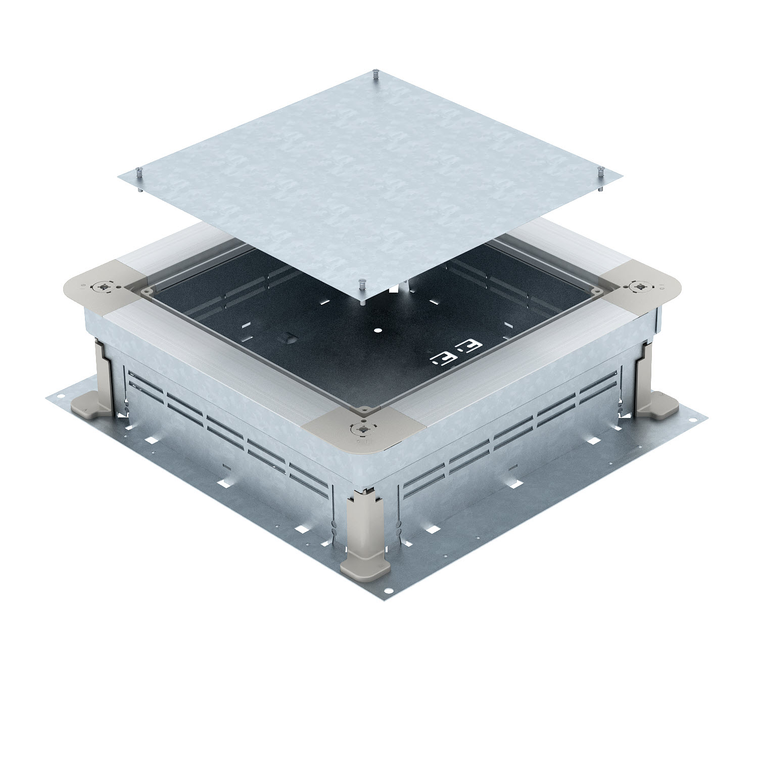 Монтажное основание под заливку в бетон для систем скрытой прокладки кабеля в стяжке. Для установки напольных лючков с помощью монтажной крышки (заказываются отдельно). Верхнюю часть монтажного основания можно плавно выравнивать на номинальной высоте стяжки (возможно быстрое выравнивание), верхняя плоскость монтажного основания должна быть заподлицо (вровень) со стяжкой. Благодаря звукоизоляционным свойствам и системным аксессуарам монтажное основание можно использовать для тяжелых условий эксплуатации.