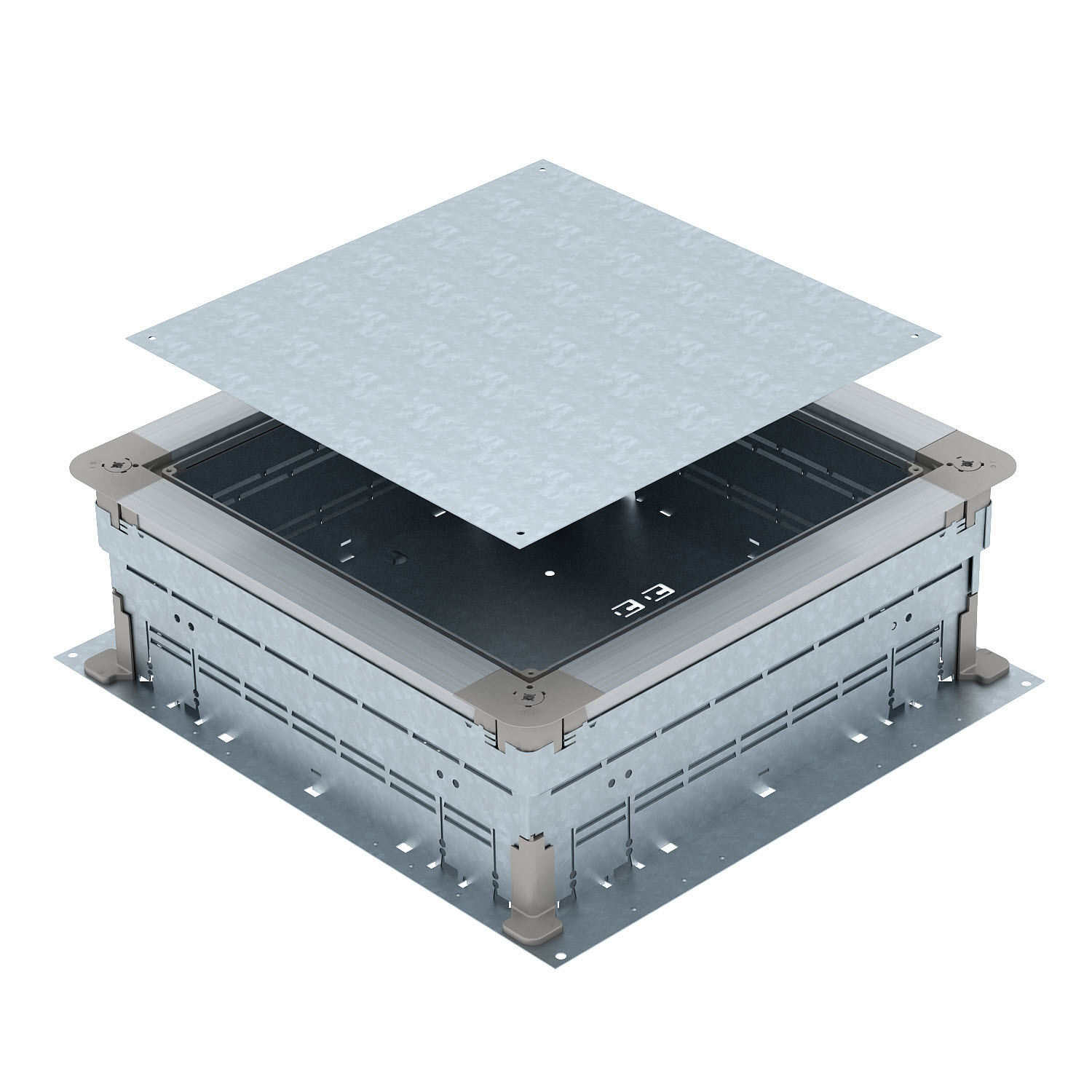 Монтажное основание под заливку в бетон для систем скрытой прокладки кабеля в стяжке. Для установки напольных лючков с помощью монтажной крышки (заказываются отдельно). Верхнюю часть монтажного основания можно плавно выравнивать на номинальной высоте стяжки (возможно быстрое выравнивание), верхняя плоскость монтажного основания должна быть заподлицо (вровень) со стяжкой. Благодаря звукоизоляционным свойствам и системным аксессуарам монтажное основание можно использовать для тяжелых условий эксплуатации.