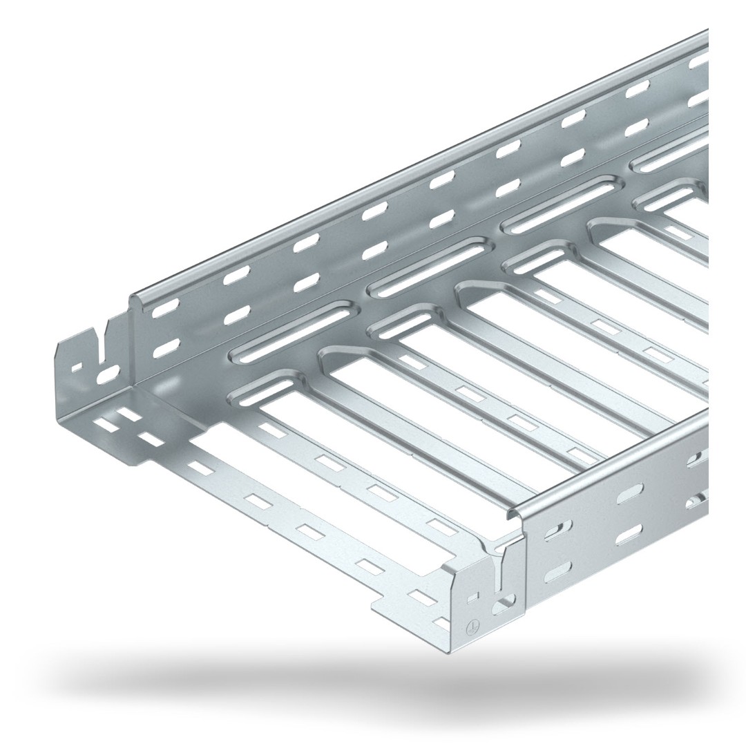 Кабельный лоток листовой перфорированный с высотой боковой стенки 60 мм, шириной 200мм, толщина 1.5мм, длина секции 3м, покрытие горячее оцинкование. Оборудован системой быстрого соединения Magic.