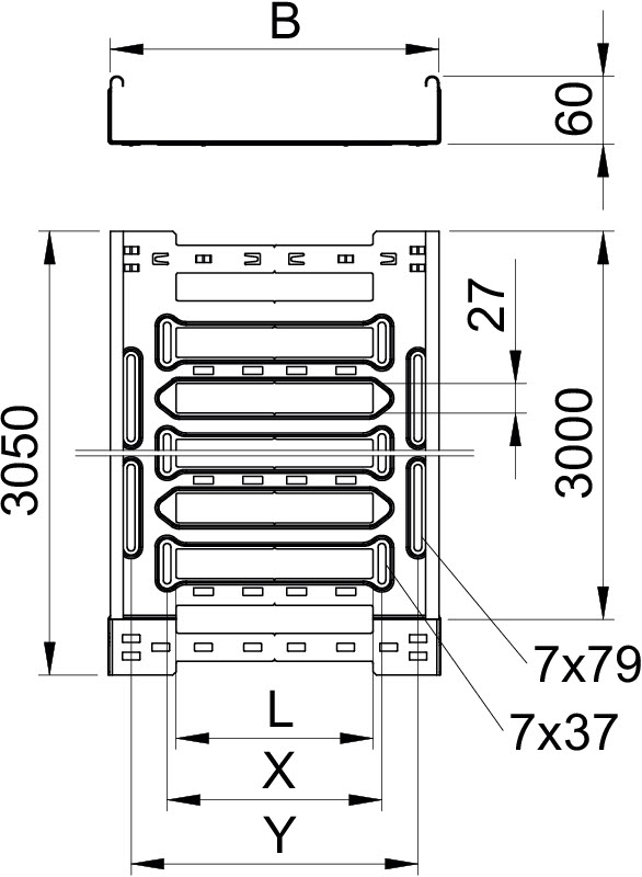 Кабельный лоток листовой перфорированный с высотой боковой стенки 60 мм, шириной 500мм, толщина 1.5мм, длина секции 3м, покрытие горячее оцинкование. Оборудован системой быстрого соединения Magic. - 6059485
