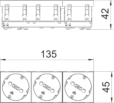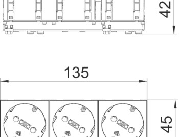 Розетка с защитным контактом, тройная 33°, с защитными шторками, с автоматическими клеммами, 2-полюс- ная, 16 A, 250 V~, автоматические клеммы соответствуют стандарту ГОСТ Р51322.1-2001 МЭК 60884-1:2006.