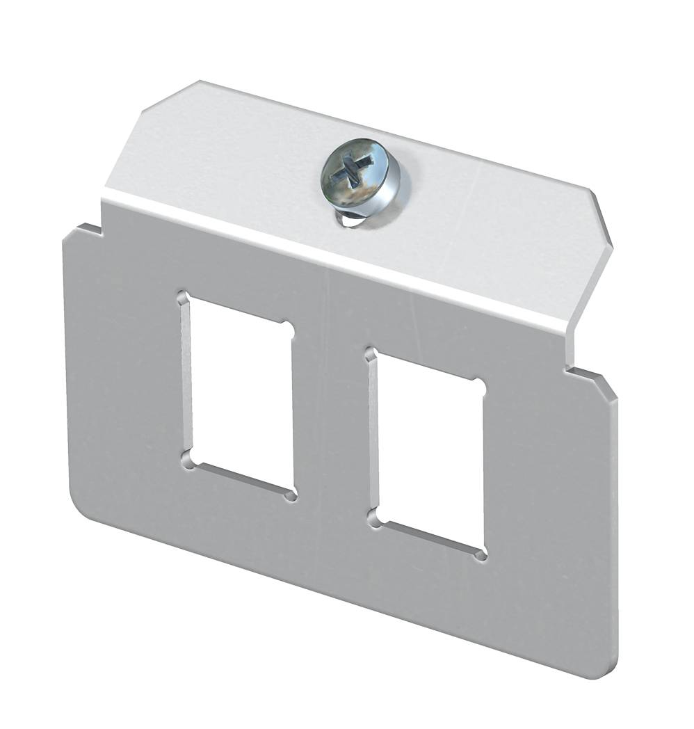 Суппорт для установки 2-х телекоммуникационных модулей следующих типов: Brand-Rex: экранированный; EKU: E-Stone; Dätwyler: KS-T, MS-K и KU-T; R&M: Snap-In и Keystone; Rutenbeck UM и UMflex; SETEC: MKJ, UKJ и XKJ; Siemon TERA; Telegärtner AMJ и UMJ.