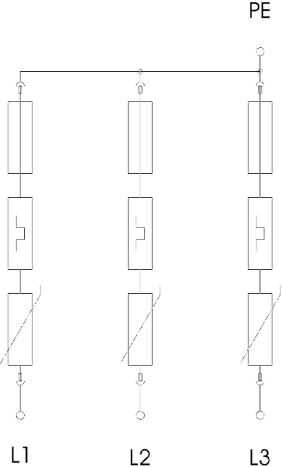 V 50-B+C/...: комбинированный разрядник, молниеразрядники и разрядники перенапряжения типа 1+2 согласно DIN EN 61643-11 (B+C согласно VDE 0675 часть 6). • Для уравнивания потенциалов систем молниезащиты согласно VDE 0185-305 (IEC 62305) • Токоотводящая способность 12,5 кА (10/350) на полюс • Для систем TN-C • В комплекте новым основанием Multibase с соединительными клеммами • Комплект из верхней части и основания, предварительно собранный и готовый к подключениюю • Вставной разрядник с динамическим разделительным приспособлением • Оптическая индикация функций • Уровень защиты < 1,3 кВ • Закрытый разрядник с варистором на основе оксида цинка для использования в обычных корпусах распределителя • Маркированные соединения Применение: выравнивание потенциалов систем молниезащиты в зданиях с наружной системой молниезащиты класса III и IV и в обычных корпусах распределителя.
